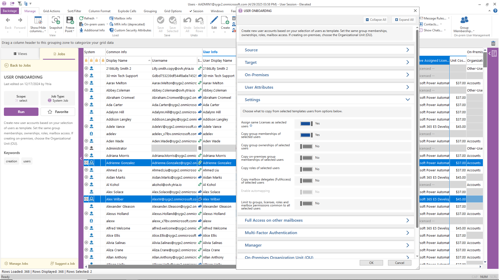 Automatically onboard new users with options to copy access and attributes from selected users.